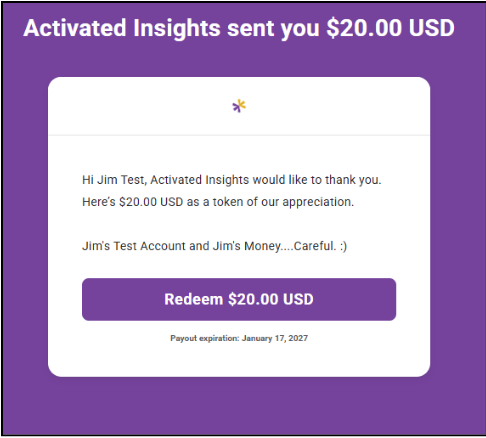 You will be redirected to the Tremendous rewards page. Click "Redeem $XX USD."